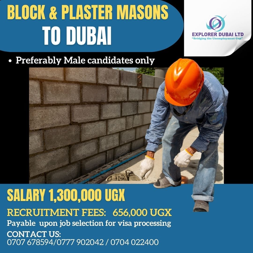 Job Opportunity: Block and plaster masons urgently needed for work in Dubai